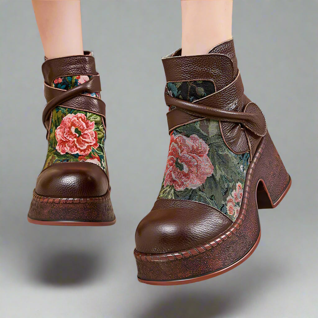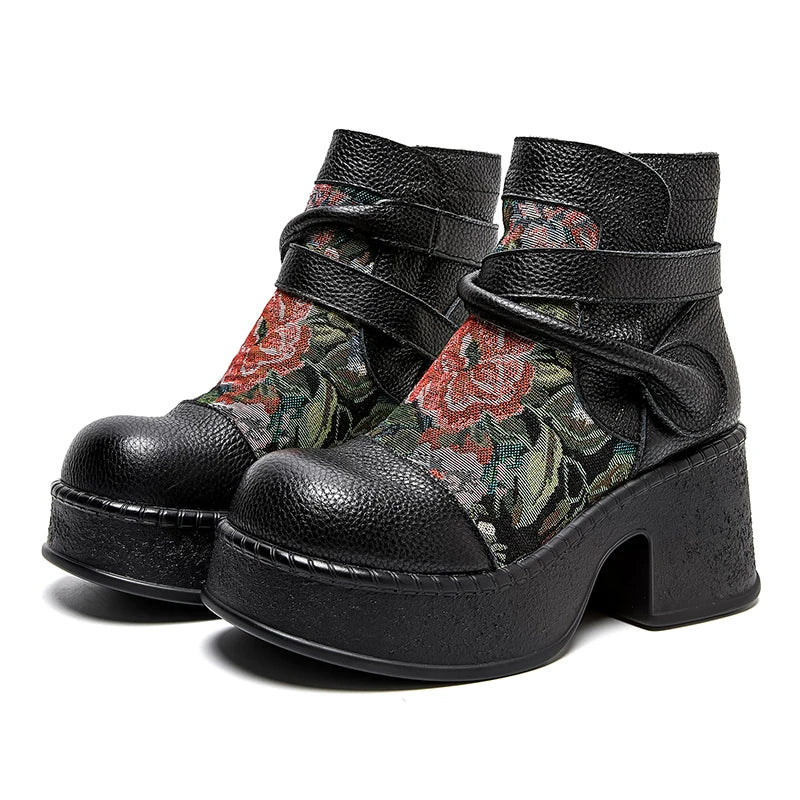 Construídas com couro genuíno e acabamento artesanal, essas botas oferecem durabilidade e um visual marcante que acompanha você em diversas ocasiões. O fechamento com zíper facilita o ajuste rápido, enquanto o salto elevado adiciona atitude ao look sem comprometer o conforto. O bordado floral feito à mão confere personalidade única, tornando cada par especial. Ideal para uso diário, passeios, viagens curtas ou encontros casuais, combinando bem com peças neutras ou coloridas para destacar o estilo retrô moderno.