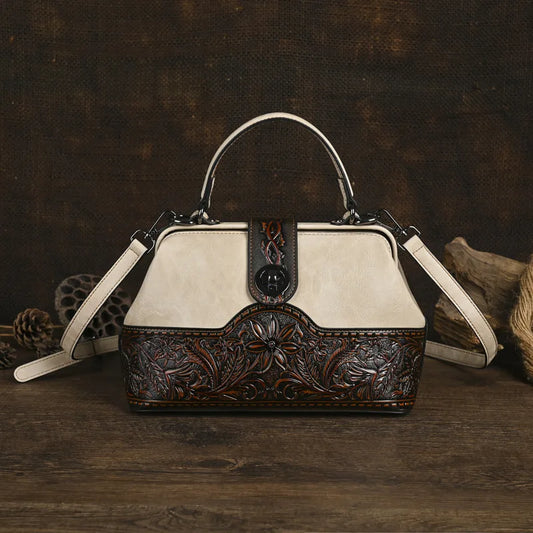 • Mala Luna Floral Vintage – Em Couro Genuíno Premium